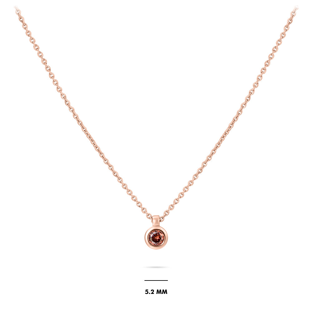 This rose gold plated eye-catching necklace is the perfect statement piece. Crafted with a bezel pendant and set with a brown zirconia stone, the necklace is sure to become a treasured accessory. With its exclusive design and eye-catching sparkle, it adds a touch of sophistication to any outfit.