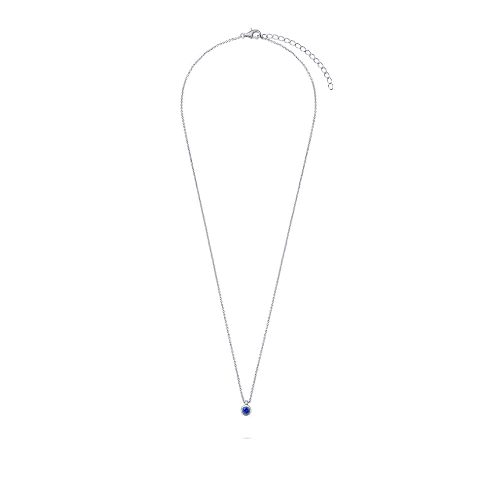 This eye-catching necklace is the perfect statement piece. Crafted with a bezel pendant and set with a blue zirconia stone, the necklace is sure to become a treasured accessory. With its exclusive design and eye-catching sparkle, it adds a touch of sophistication to any outfit.