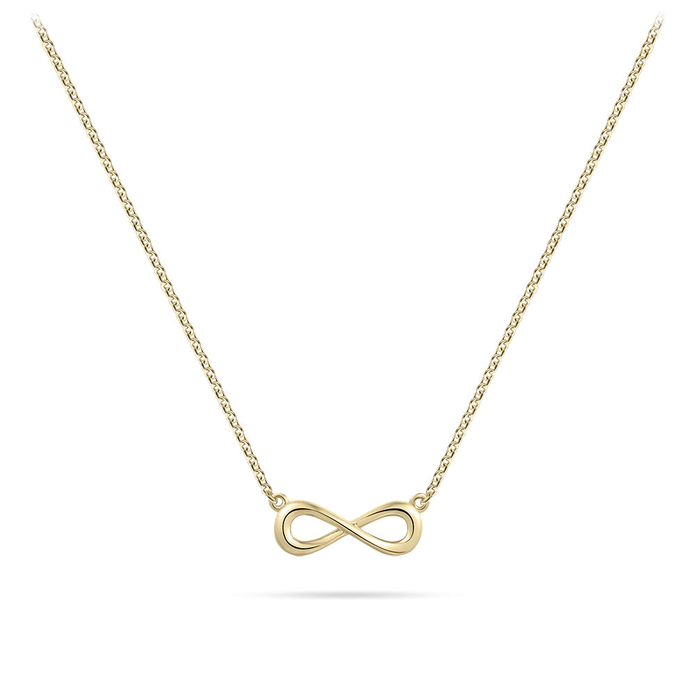 Embrace the beauty of everlasting love and connection with this 14K gold infinity necklace. Designed with a sleek and elegant infinity appliqué, this necklace represents eternity, strength, and limitless possibilities. Crafted from solid 14K gold, it offers a radiant shine and exceptional durability, making it a cherished piece for years to come.
