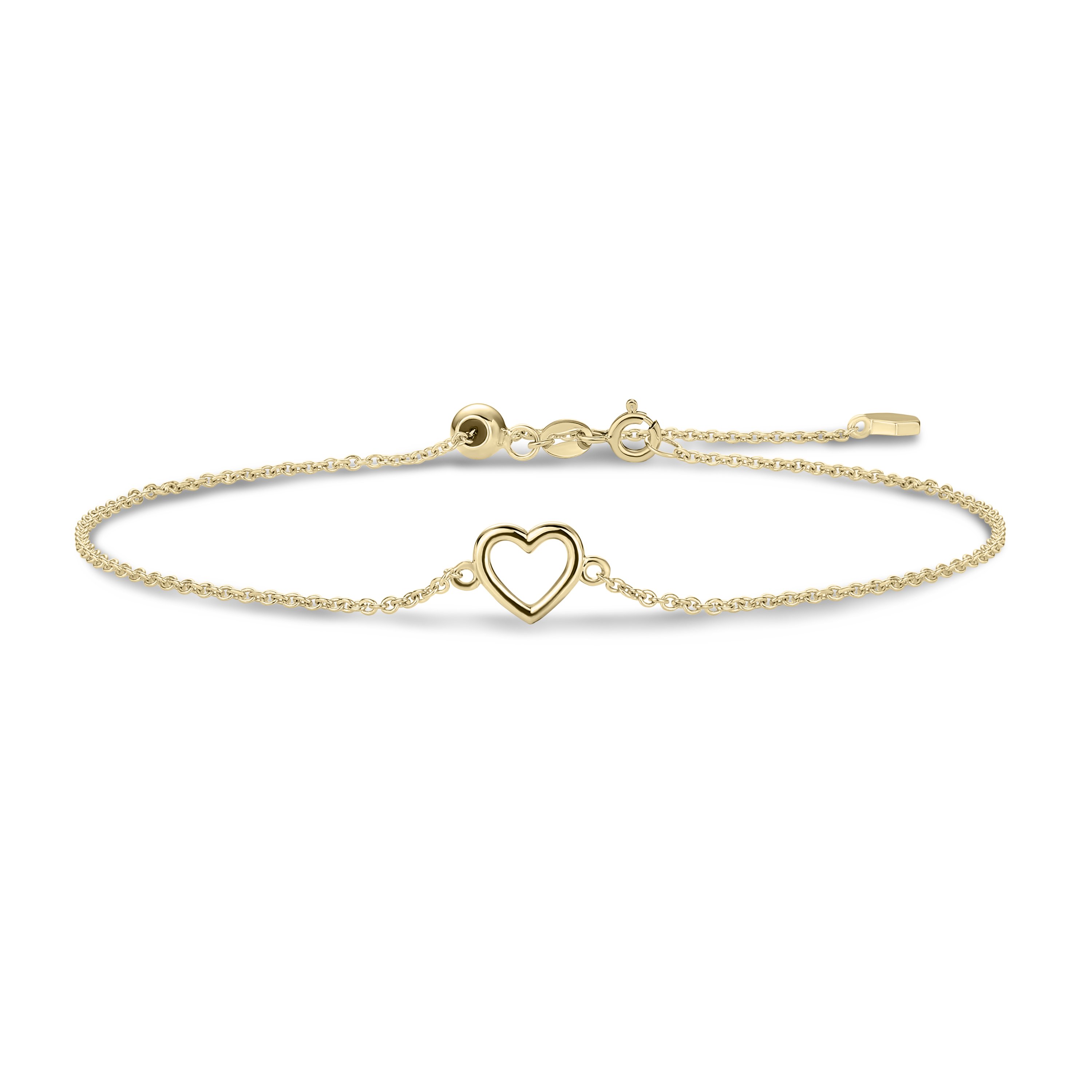 Embrace elegance and sentiment with this 14K gold bracelet featuring an open heart appliqué. Designed to symbolize love, connection, and timeless beauty, this delicate piece is crafted from solid 14K gold, offering a radiant glow and exceptional durability. The open heart charm adds a minimalist yet meaningful touch, making it perfect for everyday wear or as a heartfelt gift.