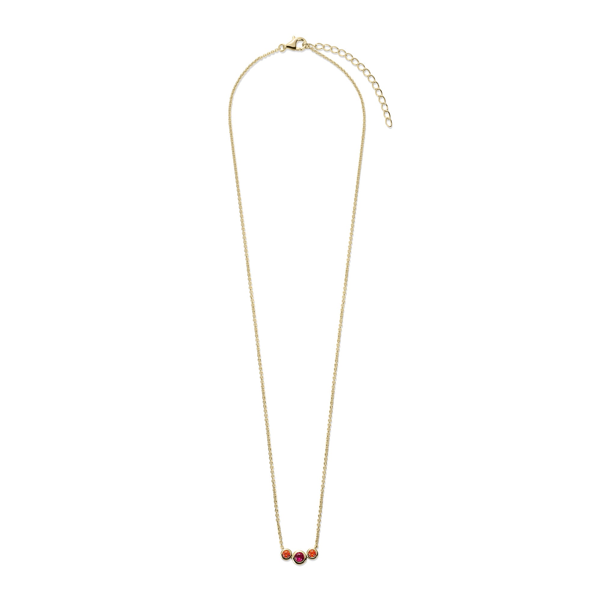 This gold plated necklace is a luxurious essential for any jewelry collection. Crafted with a sleek gold plated base and three colorfull stones, the necklace is the perfect way to accessorize for any occasion, from the office to a night out. Elevate your style with this elegant piece.